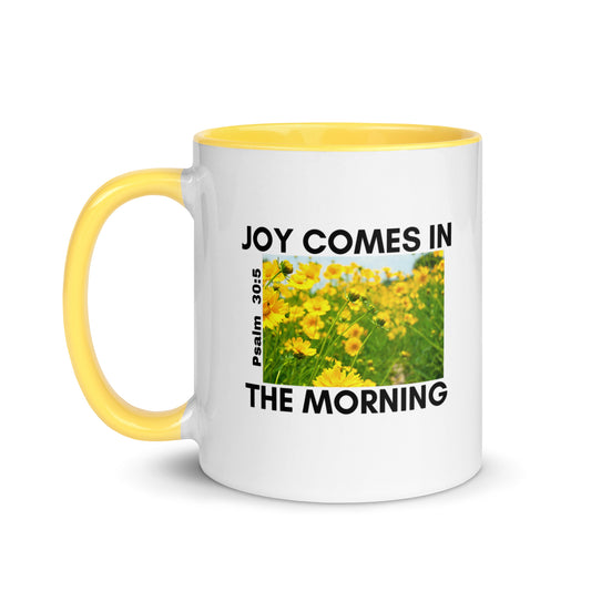 JOY COMES IN THE MORNING MUG WITH COLOR INSIDE