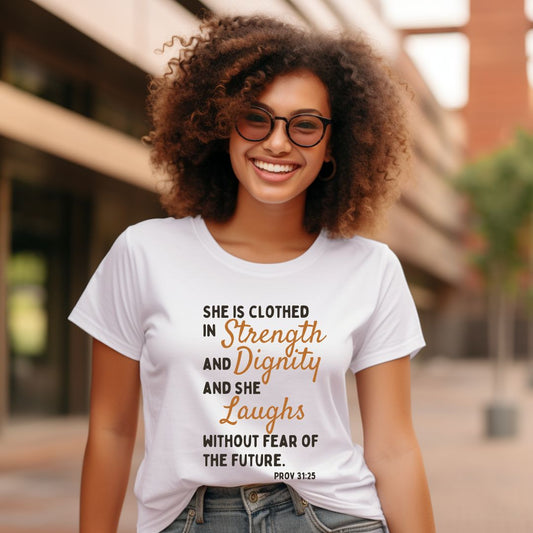 SHE IS CLOTHED IN STRENGTH & DIGNITY SHORT SLEEVE TEE