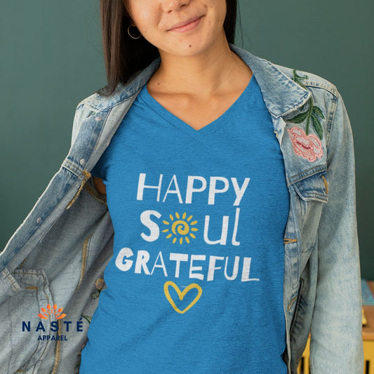 HAPPY SOUL GRATEFUL HEART LADIES' V-NECK T-SHIRT