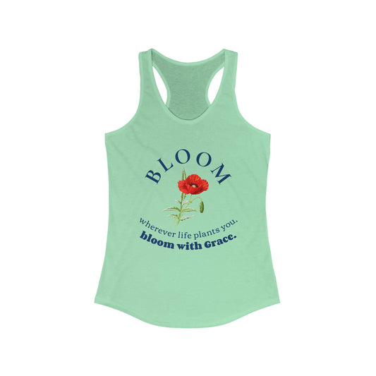 BLOOM: Wherever life plants you, bloom with Grace Women's Racerback Tank