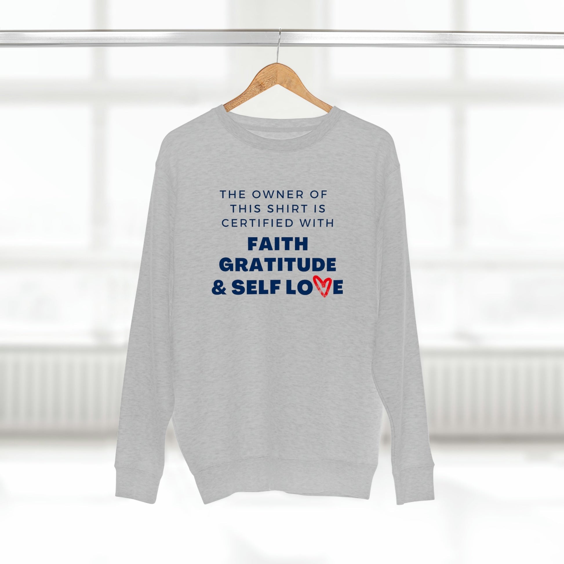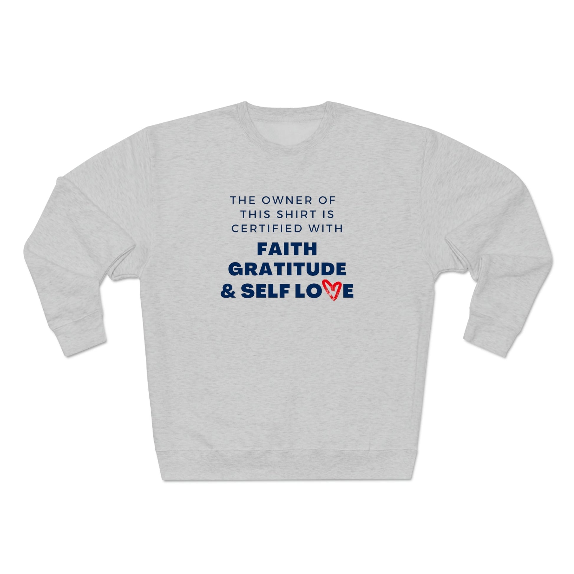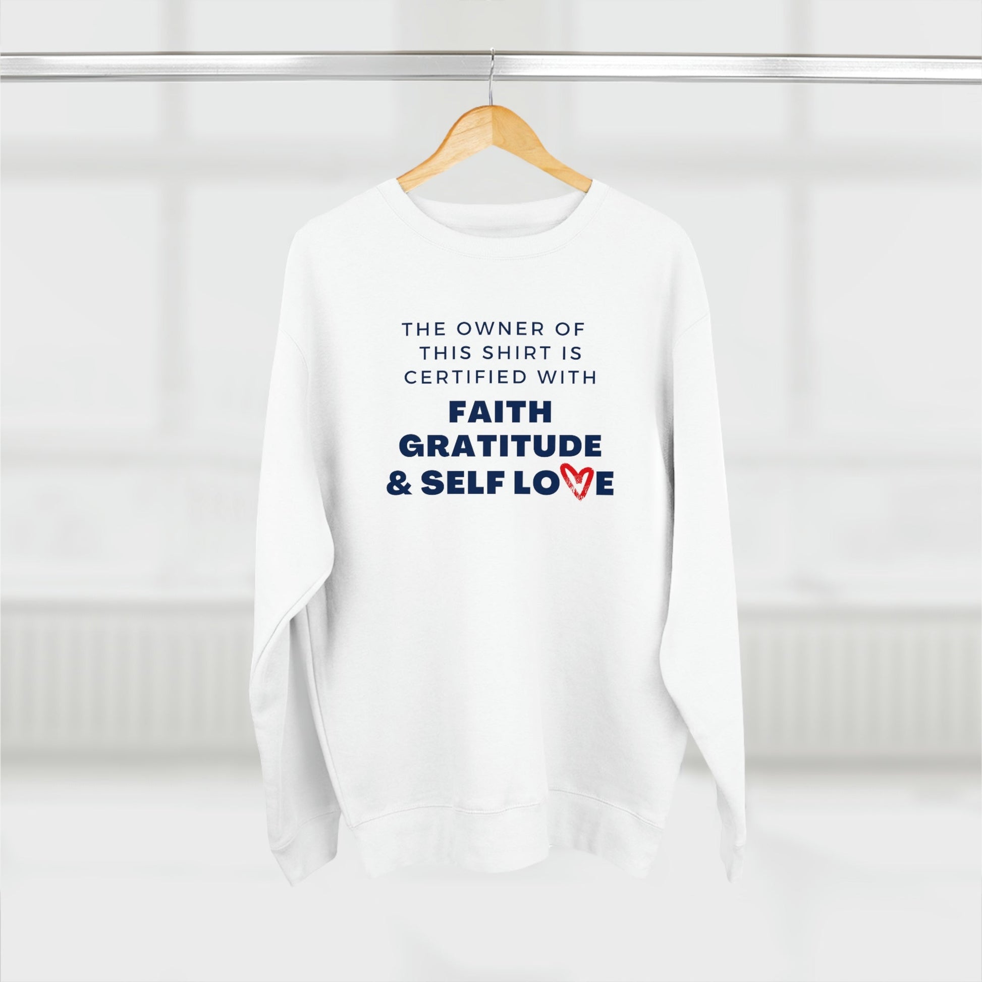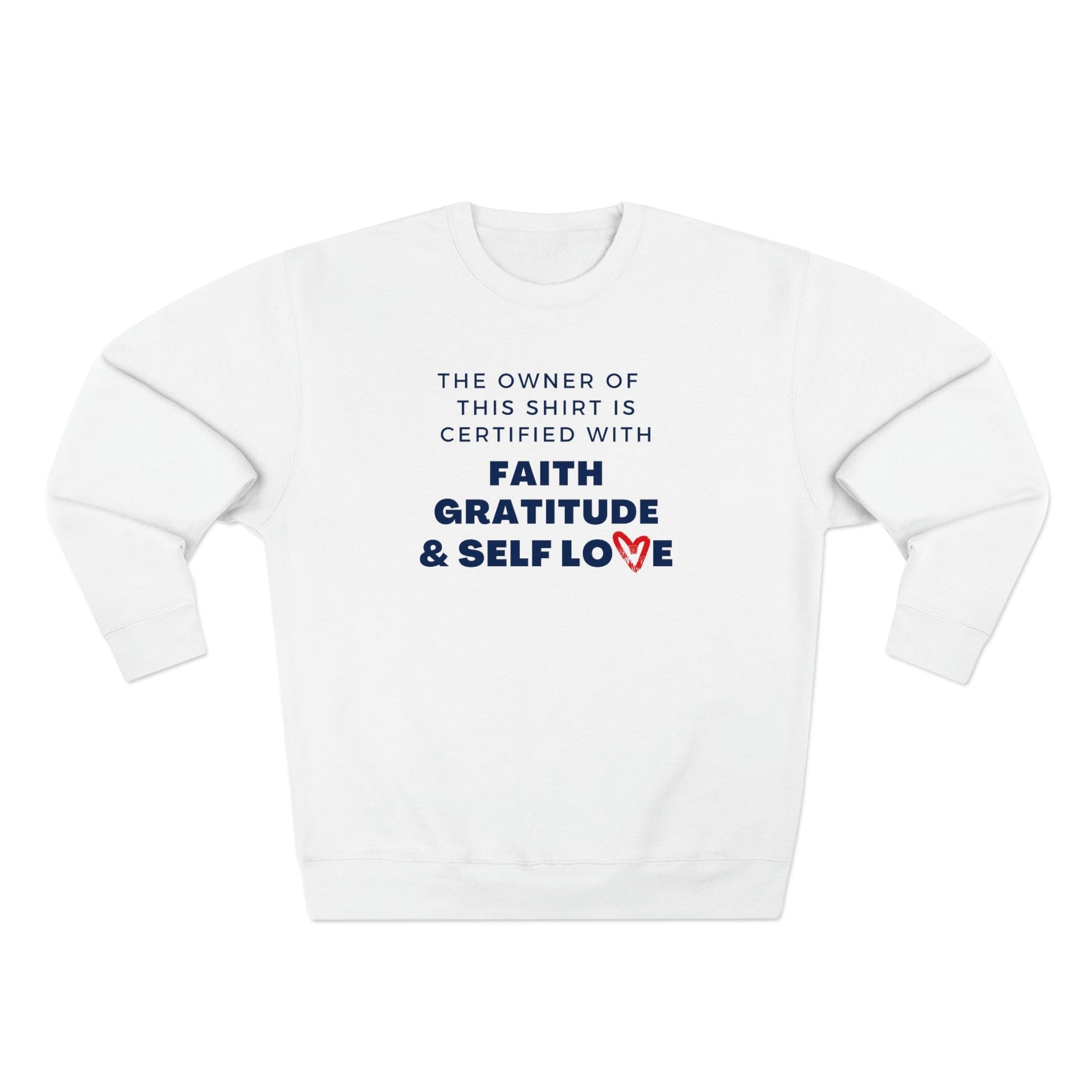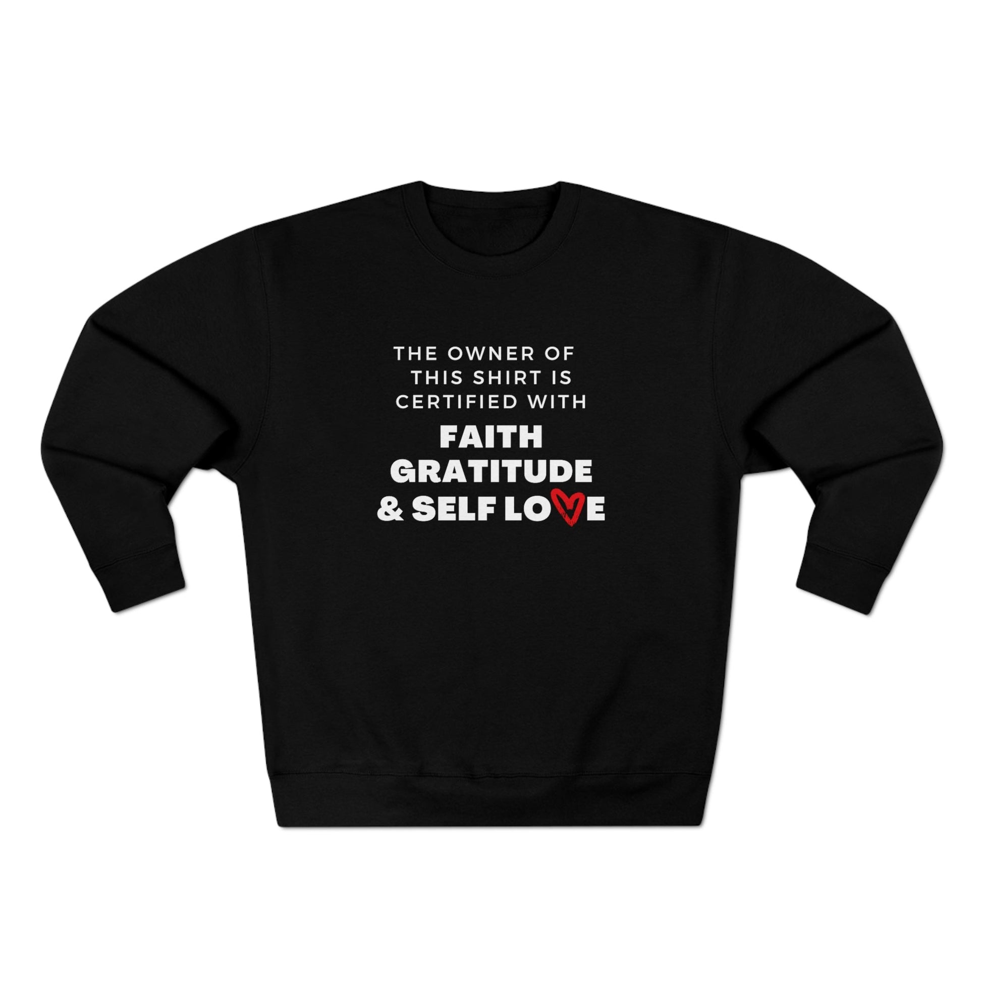 CERTIFIED IN FAITH, GRATITUDE & SELF LOVE PREMIUM CREWNECK SWEATSHIRT