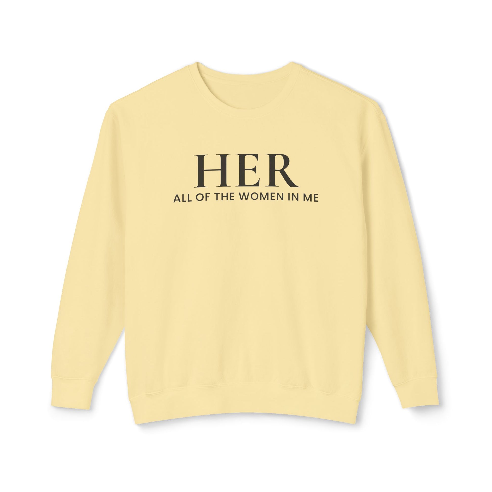 The HER Lightweight Crewneck is a statement piece for the woman who embodies every version of herself—bold, soft, resilient, and evolving. Part of our AUBRIEA Core Statements collection, these words affirm who you are and how you choose to show up in the world.